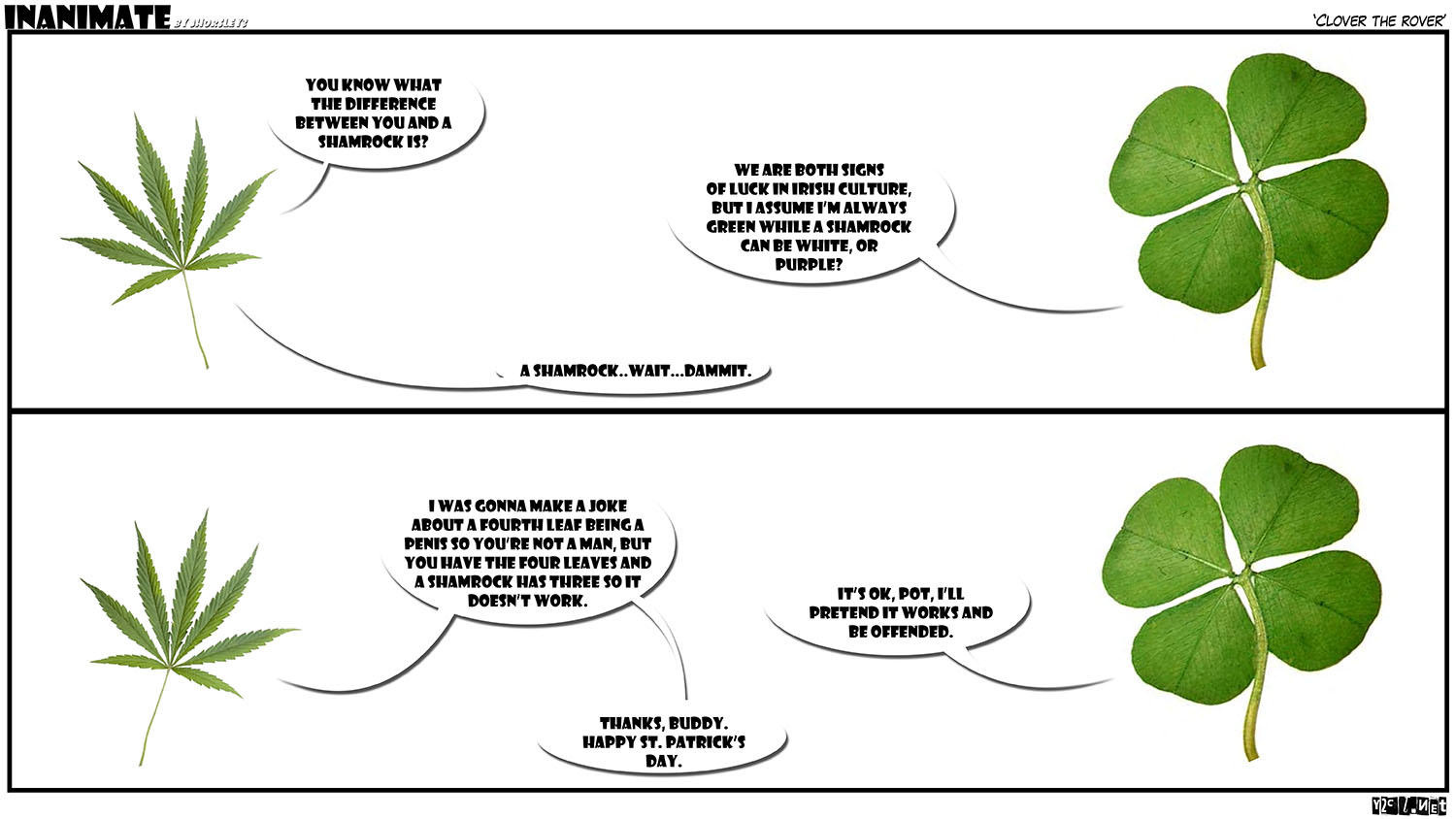 I was gonna make a joke about a fourth leaf being a penis so you’re not a man, but you have the four leaves and a shamrock has three so it doesn’t work.