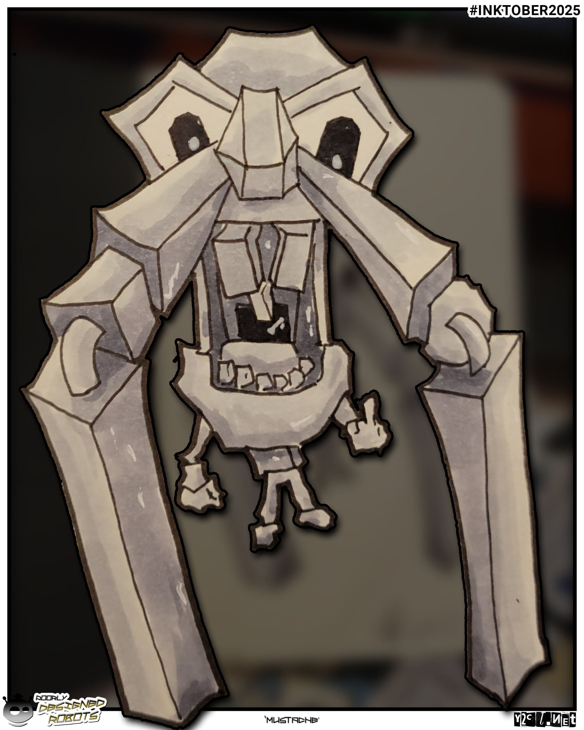 Another #inktober drawing for you. This time a little #mustache robot as a preview for another series launching in January. Poorly Designed Robots, or #pdr