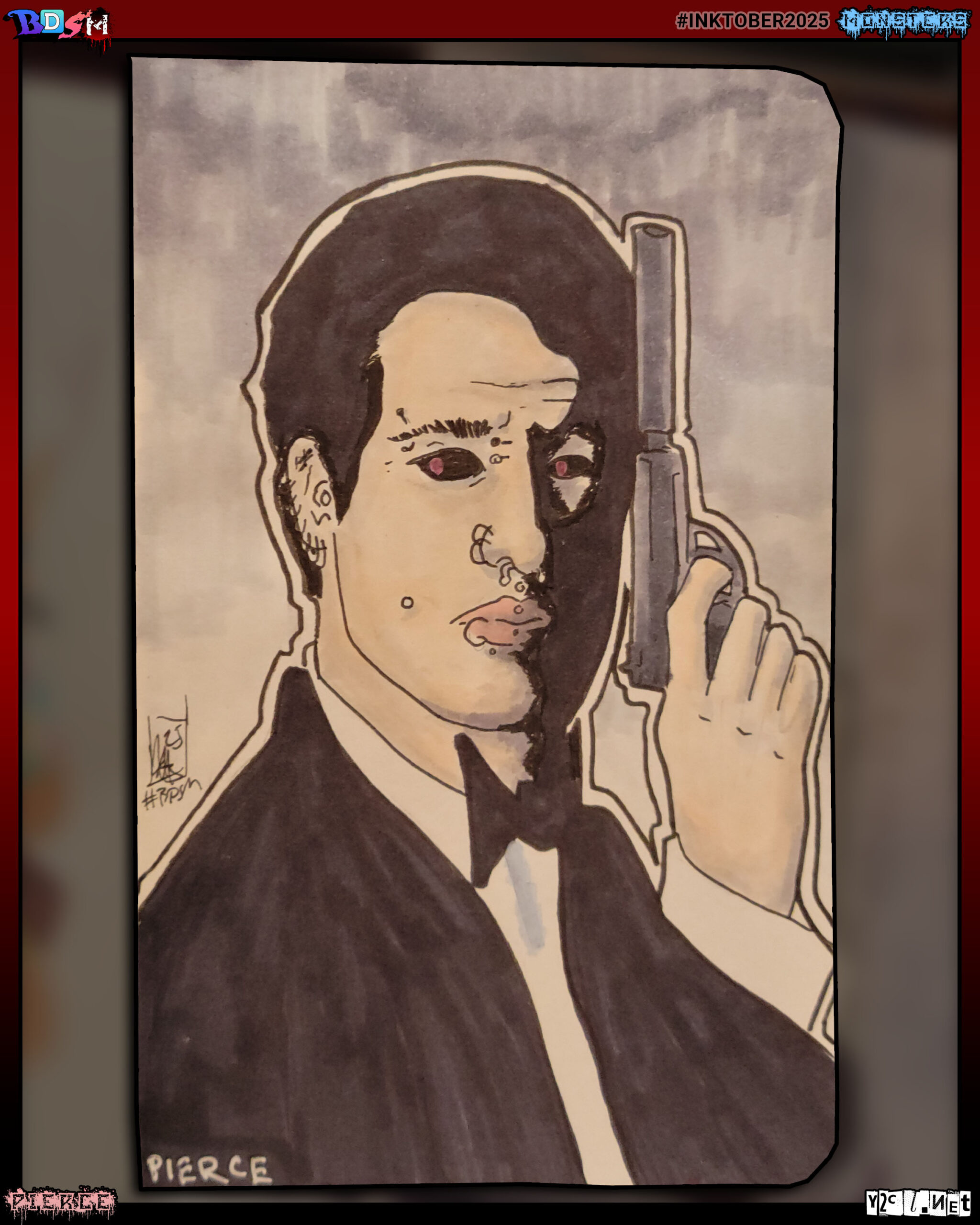It's #pierce for today's #inktober. This might date me a little, but pierced Pierce Bronson as #jamesbond #y2cl #ink #copic #bdsm