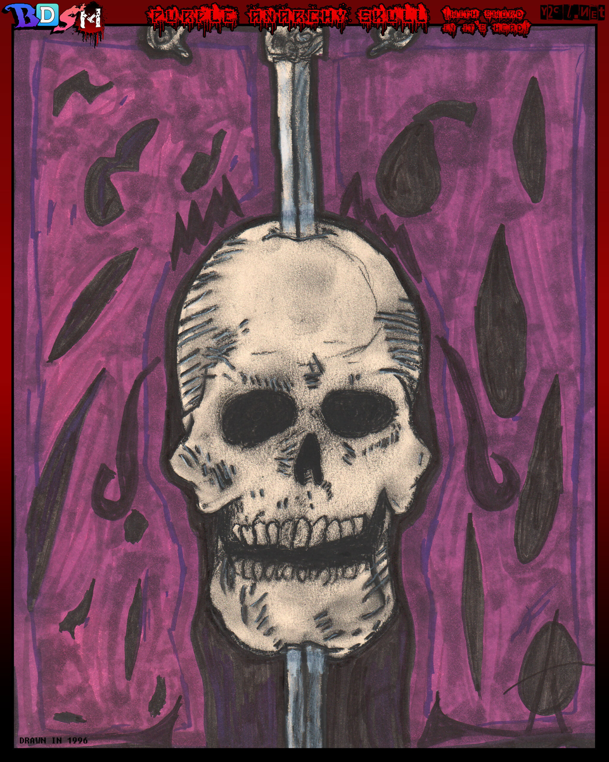 Purple Anarchy Skull with sword in its head