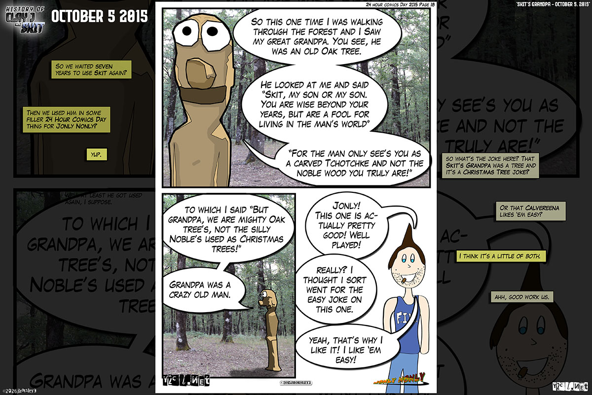 Contains the full strip 2015-10-05-Jonly Nonly - 24 Hour Comics Day 2015 Page 15 - Skits Grandpa in the background, caption Boxes are over this.