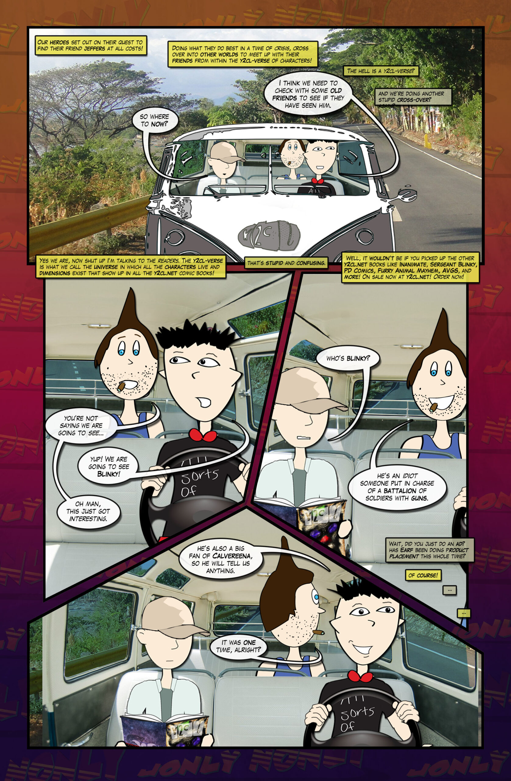 Yes we are, now shut up I'm talking to the readers. The y2cl-verse is what we call the universe in which all the characters and worlds live that show up in all the y2cl.net comic books!