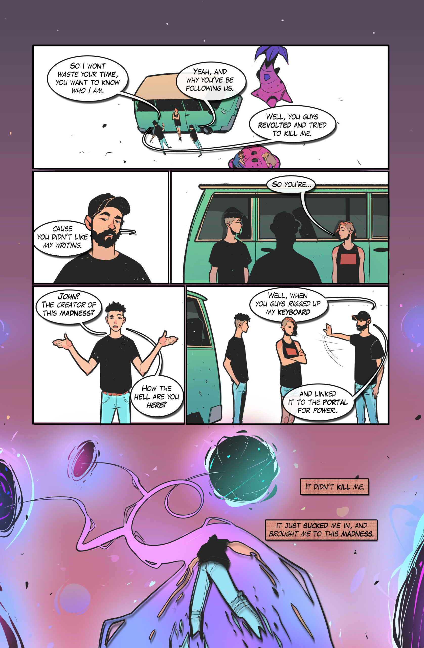 John traveling through a portal tube. This should be trippy and kinda crazy.