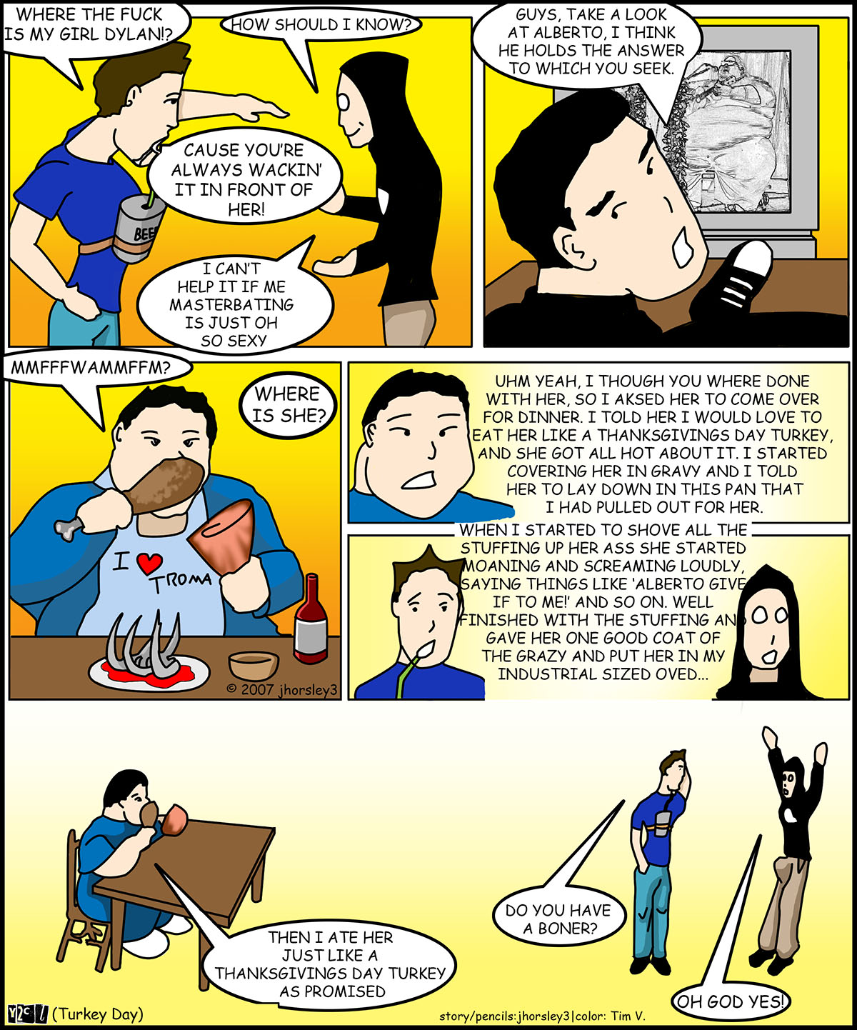 Uhm yeah, so I thought you were done with her, so I asked her to come over for dinner. I told her I would love to eat her like a thanksgivings day turkey, and she got all hot about it. I started covering her in gravy and I told her to lay down in this pan that I had pulled out for her.