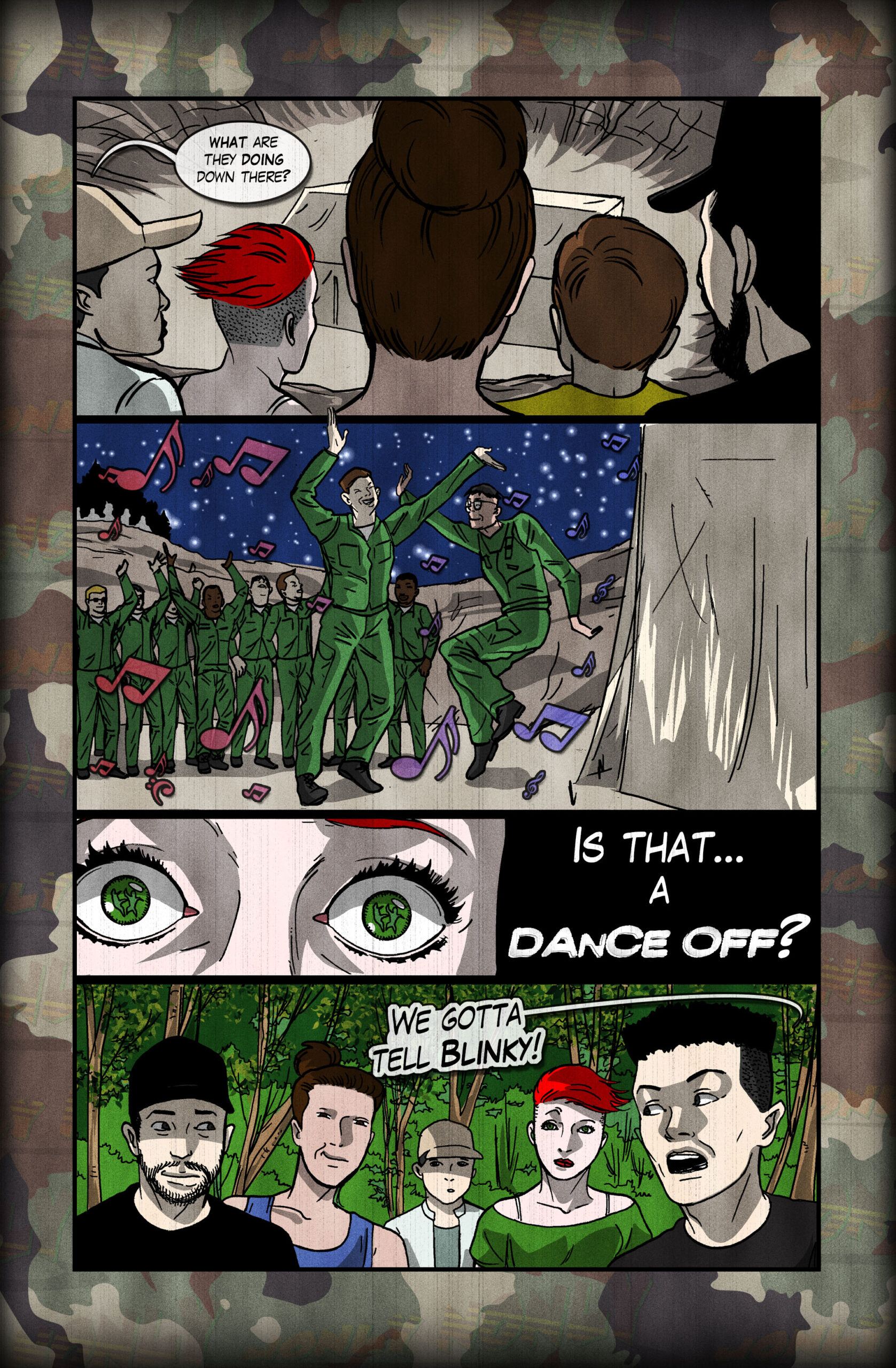 Similar to panel 1, only Calvereena's head is out of the way and you can see the guys dancing.