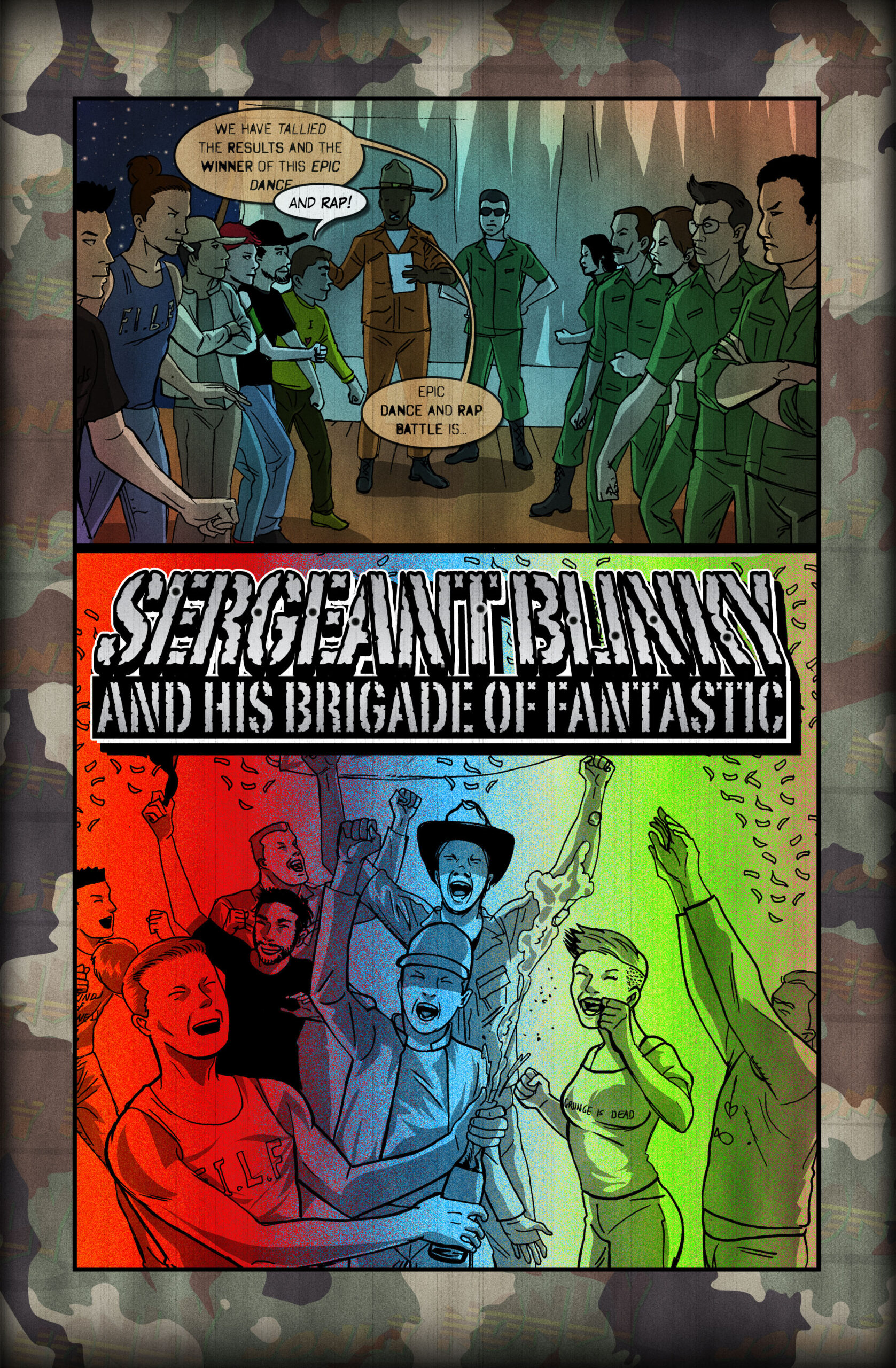 Rest of page. Sergeant Blinky and the gang (including awesome stance and John) celebrating. Calvereena is shooting champagne into the air, there's confettie falling, a banner saying Blinky Wins!