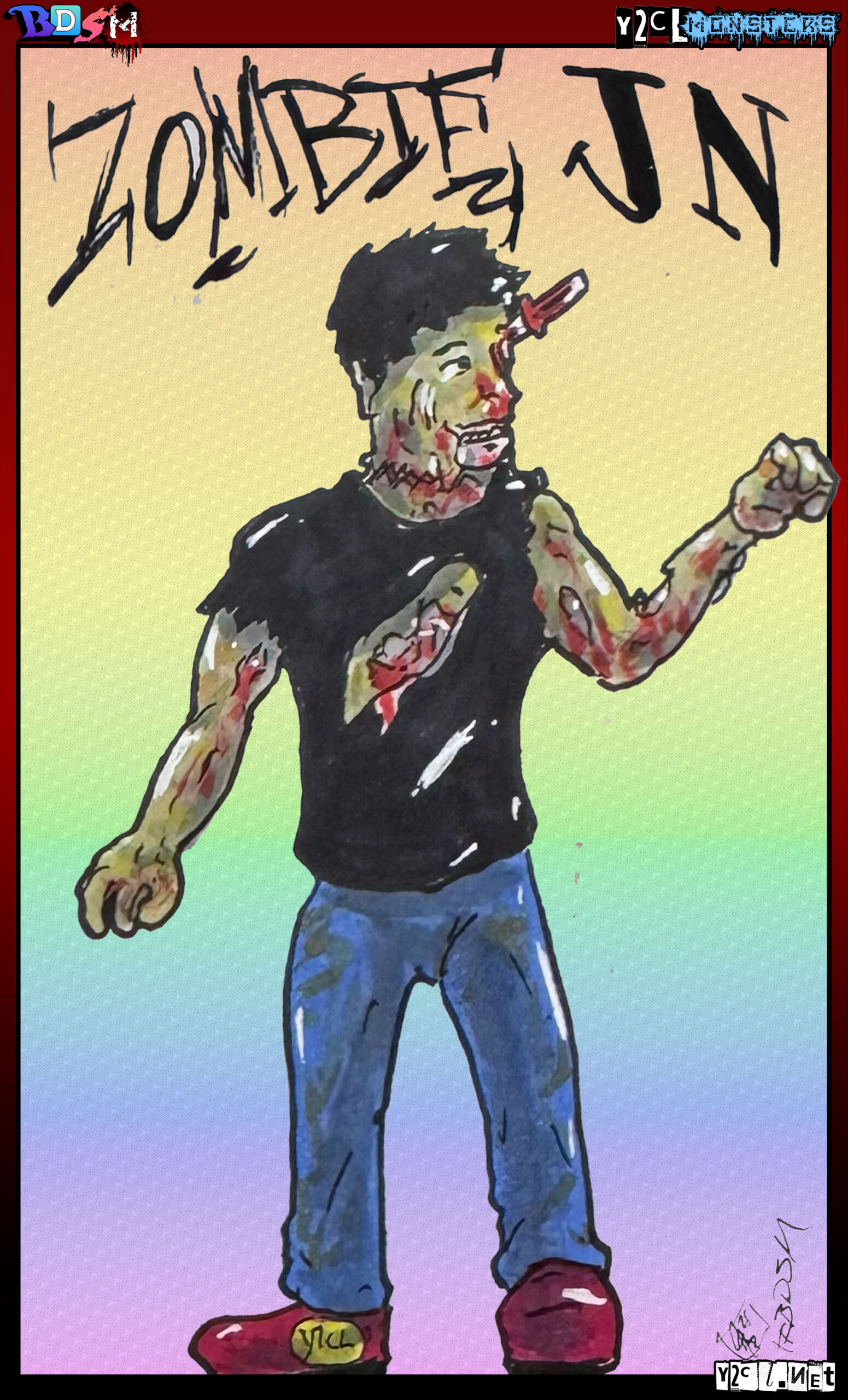 Hey look, it's Zombie JN form y2cl! With...a knife in his eye? Ouch...but look at those sweet kicks!