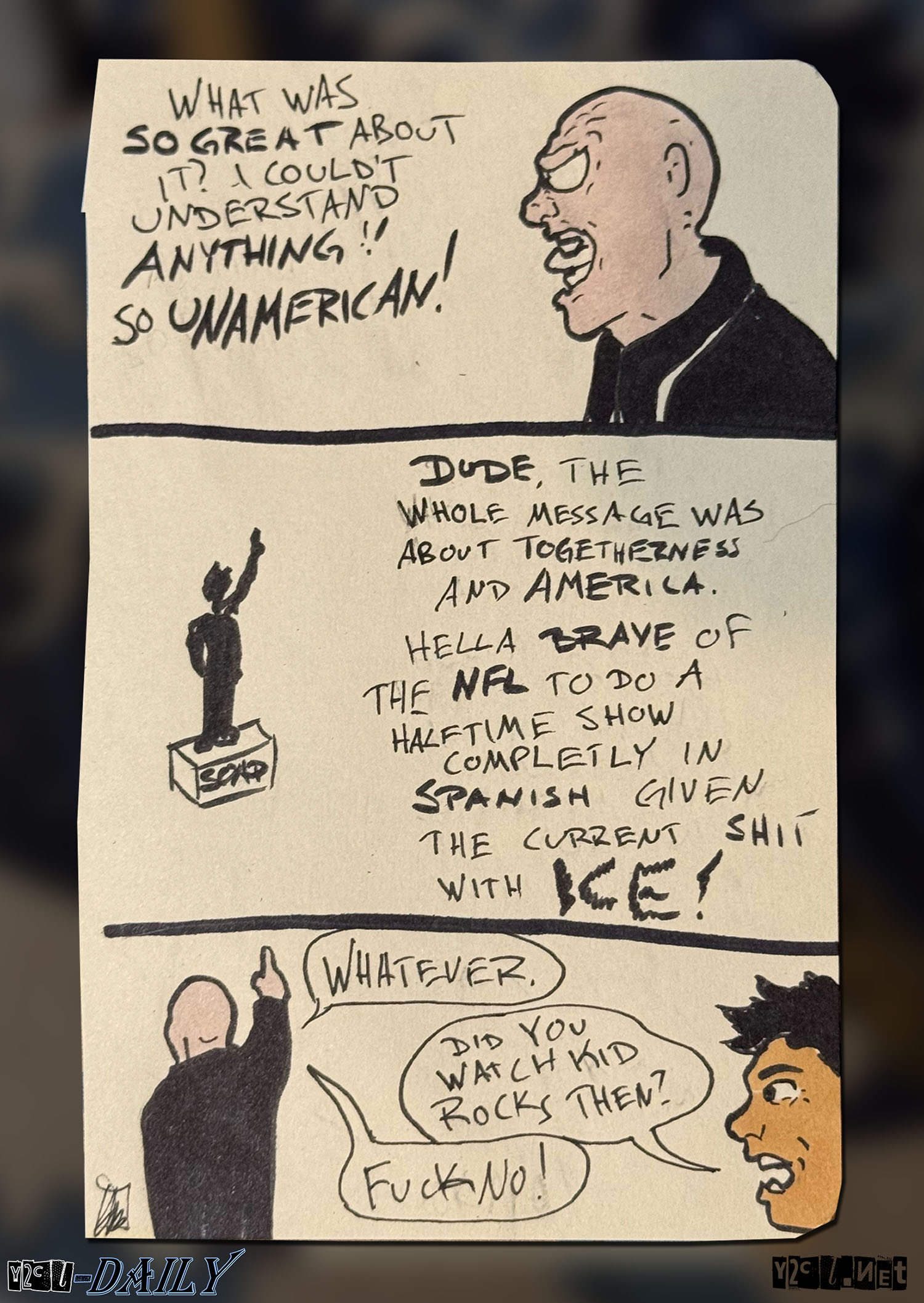 Dude, the whole message was about togetherness and America. Hella brave of the NFL to do a halftime show completely in Spanish given the current shit with ICE!