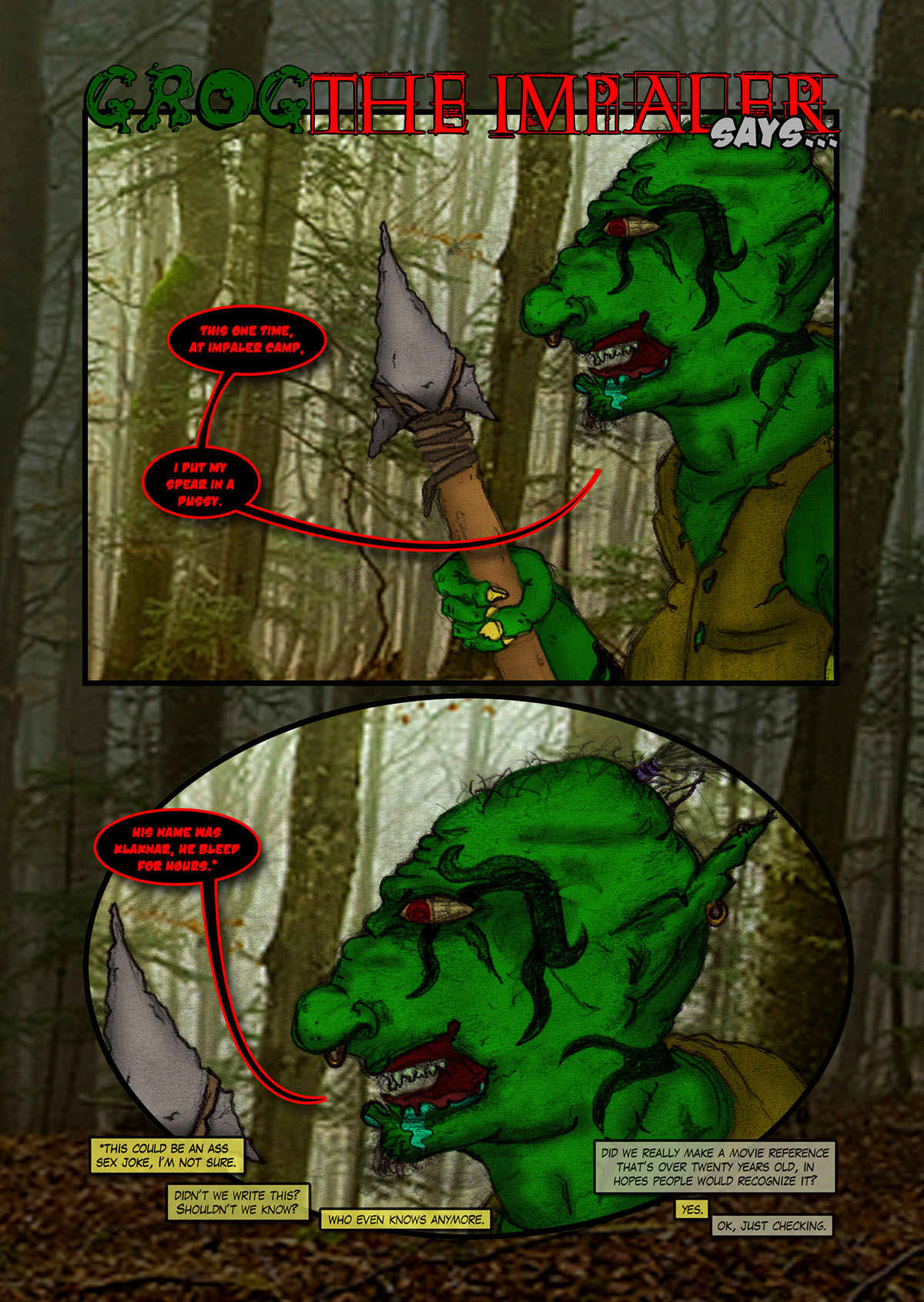This is an update of Grog The Impaler Says: Camp from 4/16/2010. Originally I planned to do a series with Grog...then didn't. He does show up in Jonly Nonly though.